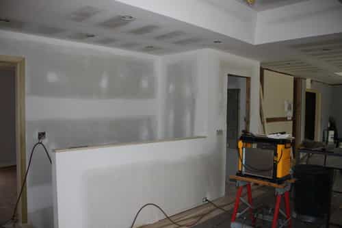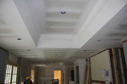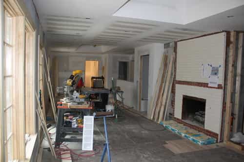 The attic access was moved to the garage, tray ceilings were framed in, the basement stairwell was opened, and larger windows were installed.