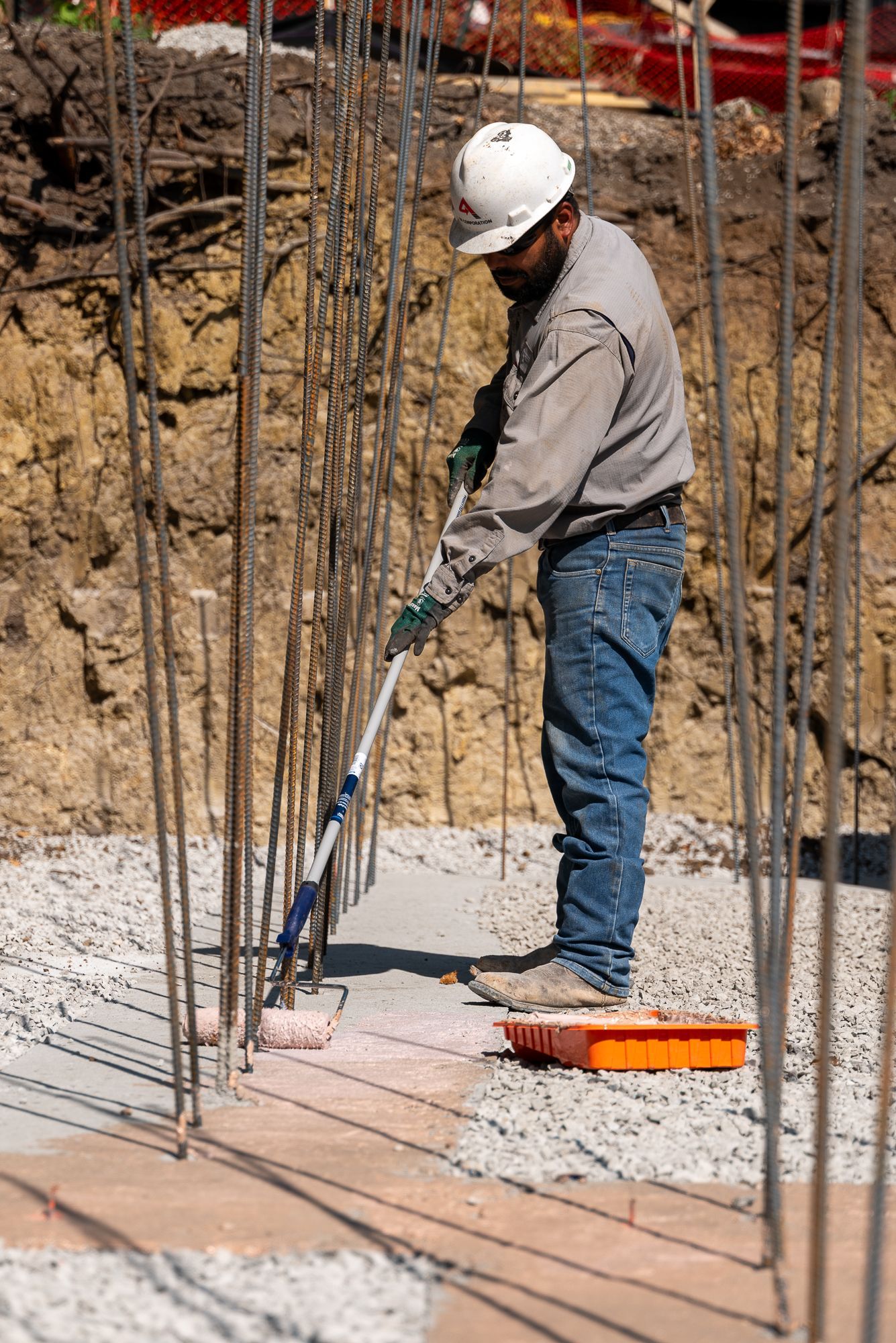 These photos were taken early on in the process - the guys came back in with a brush to apply the product around the rebar to completely isolate the footings.