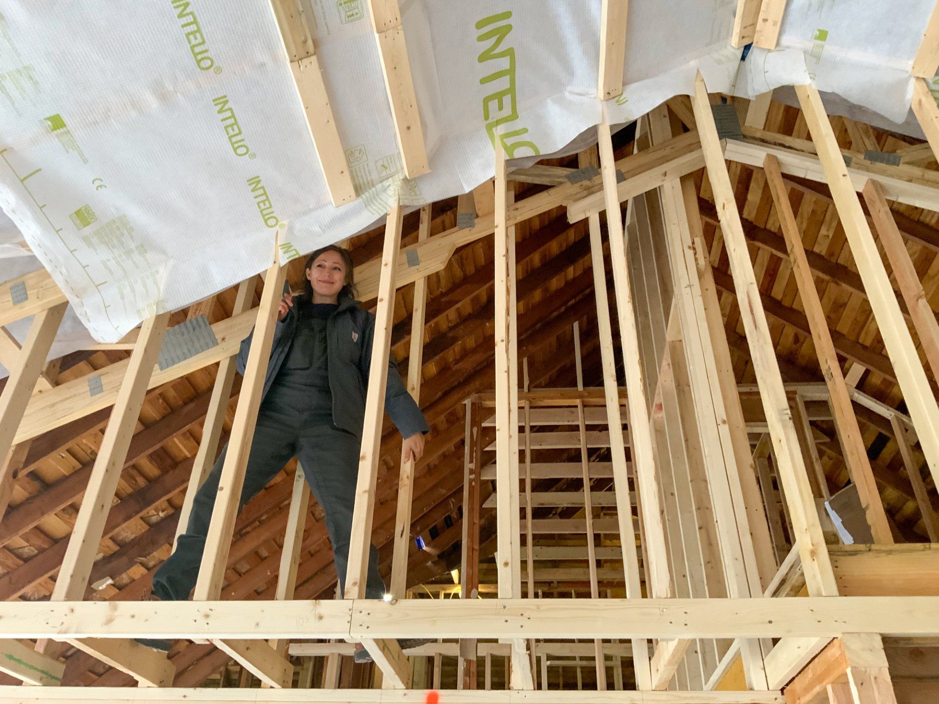 The vaulted ceilings coupled with the Smartwin windows create a space that will be breathtaking all year long. In order to keep this space comfortable and durable for years to come though, we decided to use Intello as part of the air/vapor barrier in the main living space.