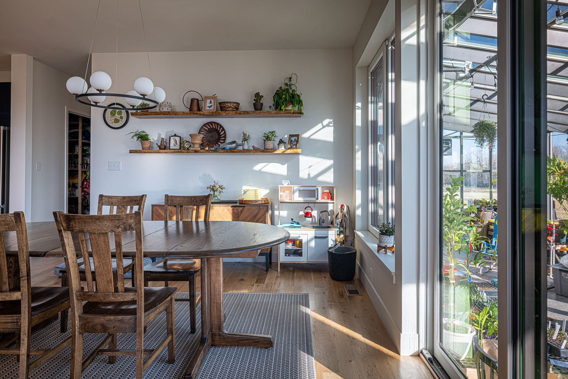 This rural high-performance home, located just outside Kansas City, was designed for a family committed to sustainable living. They wanted a home that matched their values, featuring energy-efficient design and a large integrated greenhouse. With the goal of living off the grid and minimizing energy use, this home blends modern comfort with eco-conscious features, enabling the family to live sustainably and independently.